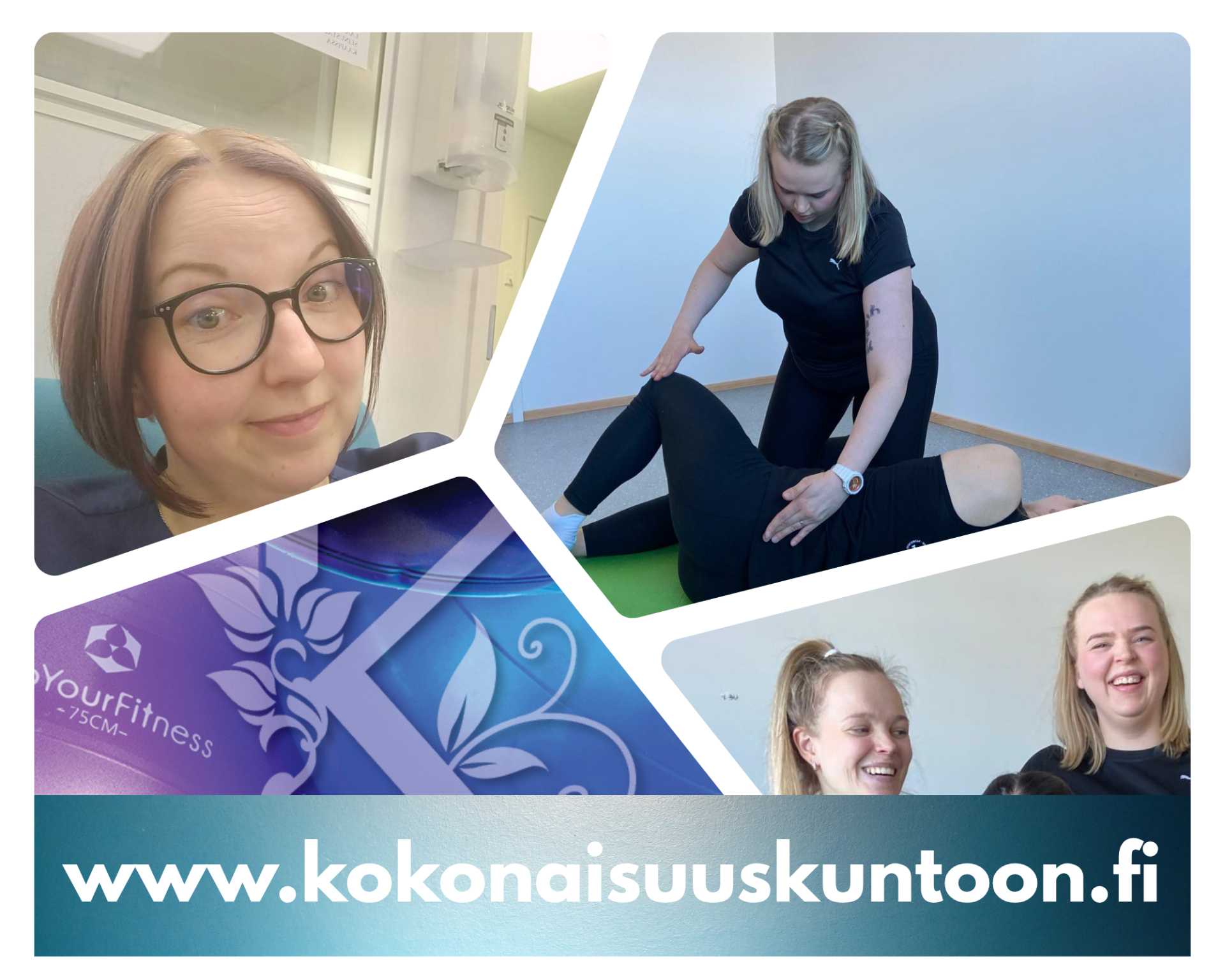 Kokonaisuus Kuntoon on kolmen terveysalan ammattilaisen ylläpitämä hyvinvoinnin keskus. Yhteinen päämäärämme on tuottaa kokonaisvaltaista hyvinvointia yksilölliset tarpeet huomioon ottaen. Työskentelemme aktiivisesti moniammatillista tiimiämme hyödyntäen.